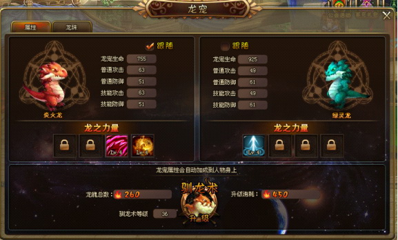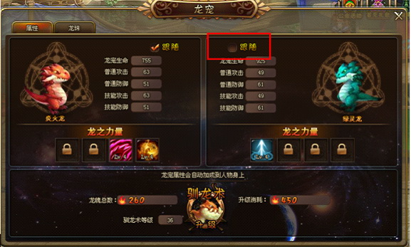 相信很多人擔心寵物需要花費較大的精力去培養,並且每次替換一隻新的寵物就要重新培養而感到異常煩惱。玩家只需要升級馴龍術的等級就能提升寵物的等級。馴龍術等級越高,寵物的屬性也越高。玩家更換寵物後再也不需要擔心寵物的等級了。